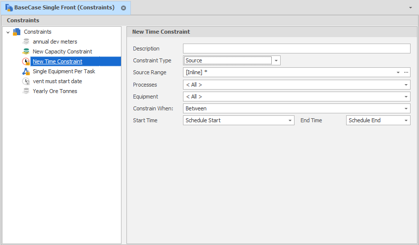 Чтобы создать ограничение по времени (Time Constraint), нажмите правой кнопкой на "Constraints" и выберите Add → New Time Constraint.